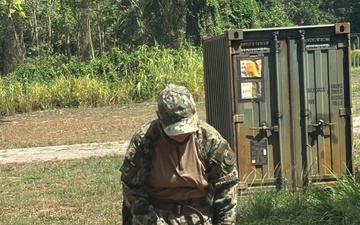 U.S. Army Capt. Jon Furlong, assigned to 84th Engineer Battalion, explains the history of the Civic Action Team Palau and their six mission sets at Camp Katuu, Palau, Dec. 18, 2025. The Civic Action Team Palau’s six mission sets include:...