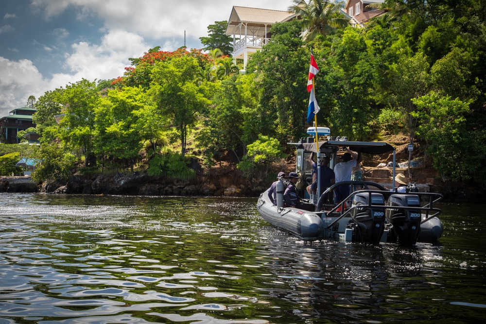 U.S. Navy Divers and the Trinidad and Tobago Coast Guard Dive Team provide overwatch for