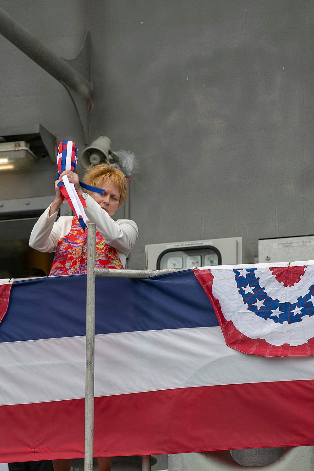 This work, Military Sealift Command’s USNS Guam Christened in Okinawa [Image 7 of 7], by Grady Fontana, identified by DVIDS, must comply with the restrictions shown on https://www.dvidshub.net/about/copyright.