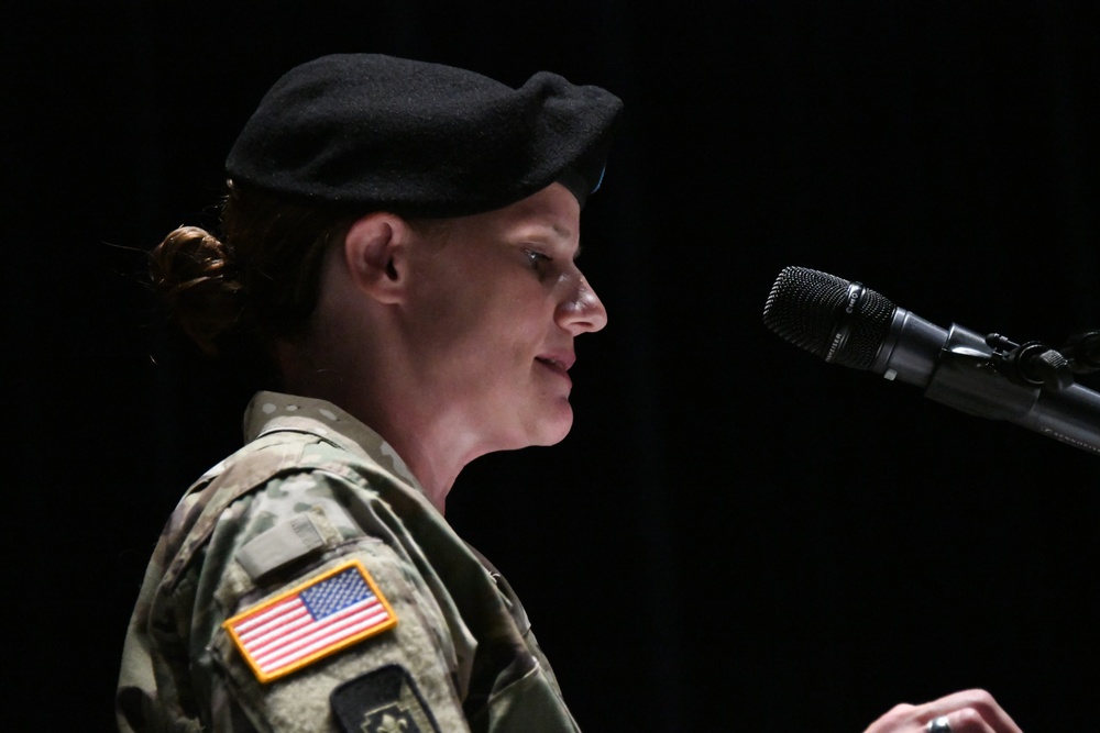U.S. Army, Col. Kathy Spangler, outgoing Commander Supreme Headquarters Allied Powers Europe (SHAPE) Healthcare Facility (SHF) and U.S. Army Health Clinic Brussels (HCB) makes a speech during the Change of Command Ceremony at SHAPE, Mons Belgium, June 24, 2021. Supreme Allied Commander Europe (SACEUR), Gen. Tod D. Wolters, presided over the ceremony. (U.S. Army photo by Mr. Henri Cambier).