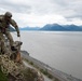 U.S. Air Force Senior Airman Trevor Liggett, a tactical air control party specialist assigned to Detachment 1, 3rd Air Support Operations Squadron, Joint Base Elmendorf-Richardson, climbs a cliff during mountaineering training at Sunshine Ridge, Alaska, Aug. 25, 2022. The 3rd ASOS special warfare Airmen utilize Alaska’s varied and austere training locations to prepare for conditions they may face on deployment. (U.S. Air Force photo by Alejandro Peña)