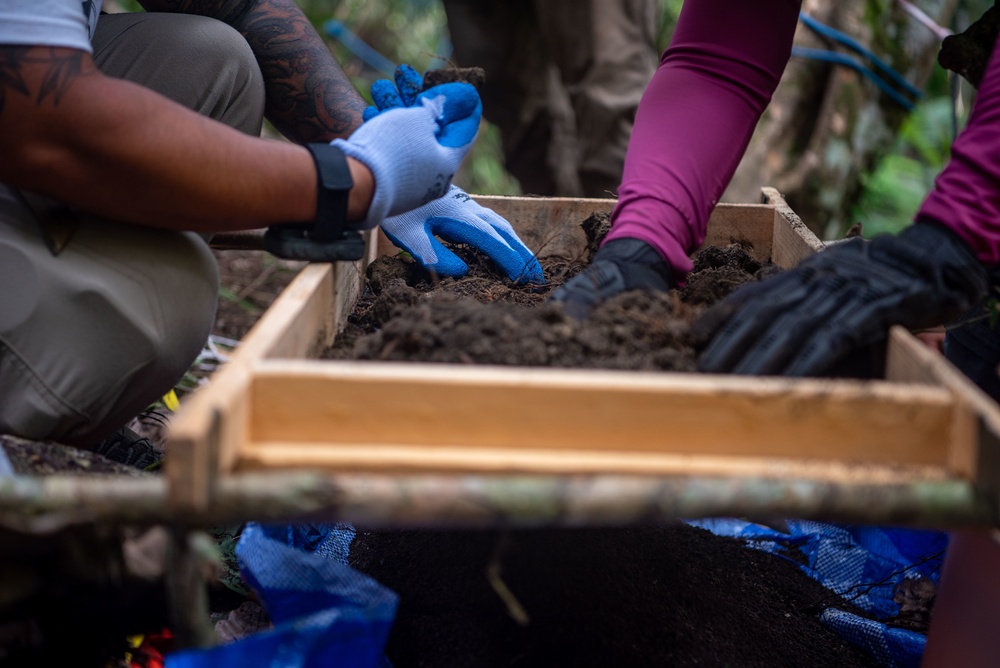 Members of an investigation team assigned to Defense POW/MIA Accounting Agency (DPAA) screen dirt at a possible crash site on a steep hill in the East Sepik Province, Papua New Guinea on Sep. 6 2022. The investigation team visited multiple areas across the mountainous East Sepik Province in hopes of recovering missing U.S. service members lost during World War II. DPAA’s mission is to achieve the fullest possible accounting for missing and unaccounted-for U.S. personnel to their families and the nation. (U.S. Army photo by Staff Sgt. John Miller)