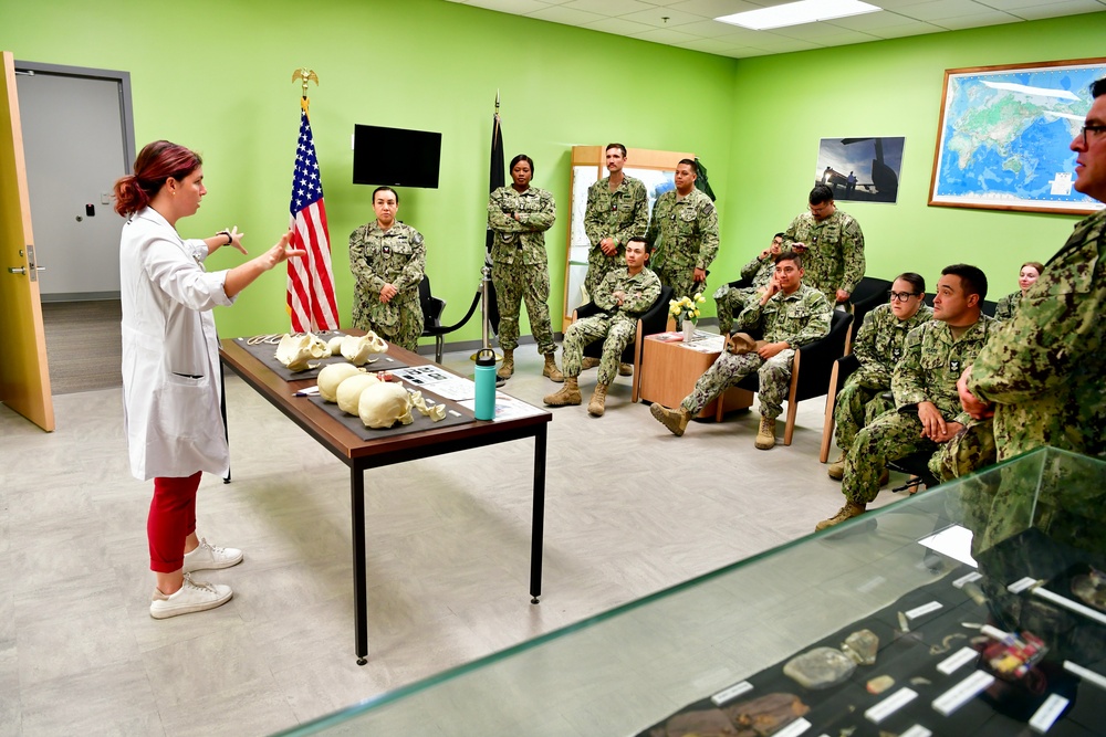 Offutt Air Force Base, Nebr. (Jun. 13, 2023) Seabee assigned to Naval Mobile Construction Battalion (NMCB) 22 attending a brief by a member of the Defense POW/MIA Accounting Agency (DPAA) at Offutt Air Force Base on the agencies mission to account for all unidentified Americans who are listed as Prisoners of War (POW), or Missing in Action (MIA), from all past wars and conflicts. Seabees provide general engineering and civil support to Navy, Marine Corps, and joint operational forces and are the expeditionary engineering and construction experts of the naval service. They provide task-tailored, adaptable, and combat-ready engineering and construction forces that deploy to support Navy objectives globally.