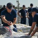 Crew members aboard U.S. Coast Guard Cutter Calhoun (WMSL 759) pose before preparing to offload pallets of illegal narcotics in Port Everglades, May 16, 2025. Calhoun’s crew offloaded more than 19,055 pounds of cocaine and marijuana valued at approximately $140.9 million in Port Everglades, May 16, 2025. (Coast Guard photo by Petty Officer 3rd Class Jessica Walker)