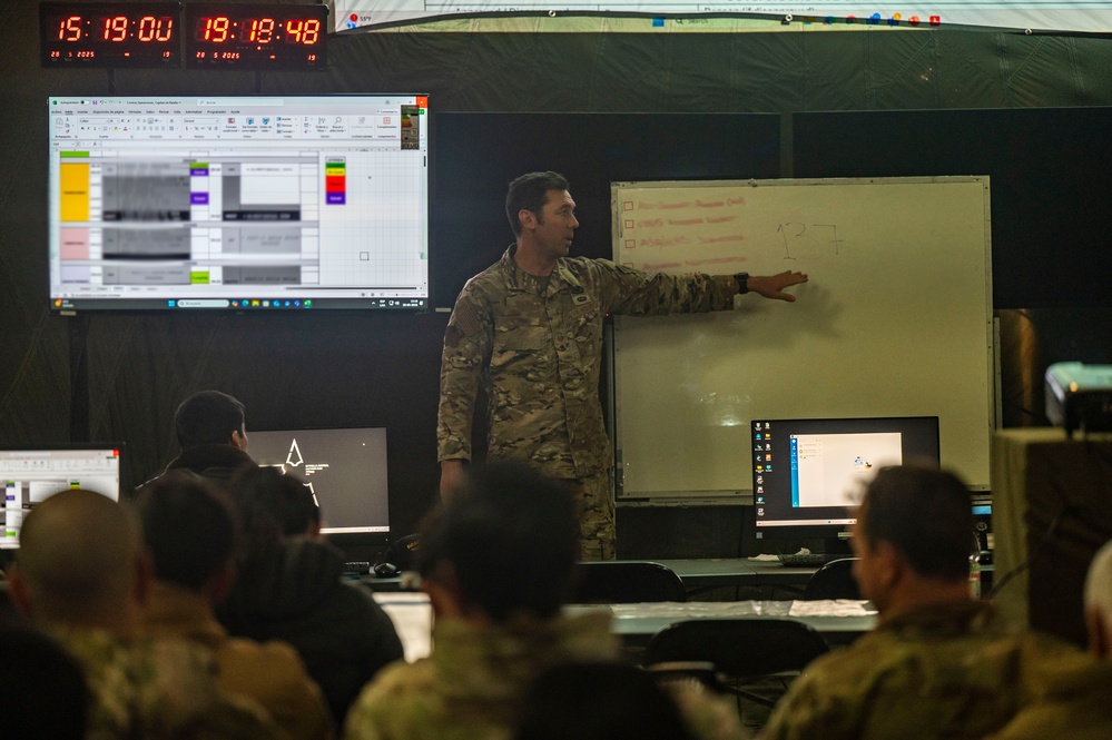 Combined Joint Special Operations Air Component leadership, facilitates a Subject Matter Expert Exchange during SOUTHERN STAR ‘25 in Rancagua, Chile, May 28, 2025. SOUTHERN STAR ‘25 is a multinational special operations exercise taking place across Chile from May 26 to June 8, uniting forces from six nations and 10 observing countries totaling over 2700 participants to enhance interoperability and strengthen global SOF partnerships through joint training from as far north as Antofagasta to the southern region of Punta Arenas. (U.S. Air Force photo by Tech. Sgt. Carly Feliciano)