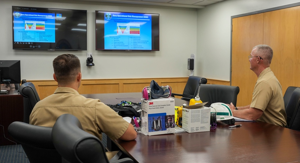 The Navy Closure Task Force-Red Hill (NCTF-RH) safety officer, right, and operations director speak to online guests during the webinar on personnel safety on Joint Base Pearl Harbor-Hickam, Hawaii, Sept. 24, 2025. Charged with the safe decommissioning of the Red Hill Bulk Fuel Storage Facility, NCTF-RH was established by the Department of the Navy as a commitment to the community and the environment. NCTF-RH continues to engage with the people of Hawaii, regulatory agencies, and other stakeholders as it safely and deliberately decommissions the facility. (U.S. Navy photo by Mass Communication Specialist 3rd Class Krystal Diaz)