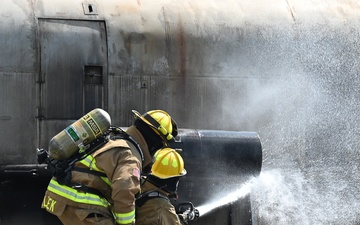 New York Air National Guard Airmen assigned to the Hancock Field Fire Department participated in a Syracuse Regional Airport Authority Disaster Drill at Syracuse Hancock International Airport, Aug. 10, 2024. The drill, which is held every three years is mandated by the Federal Aviation Authority.
